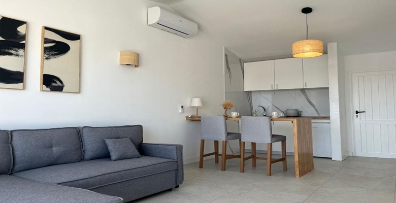Apartamento luminoso con 1 dormitorio con 2 camas individuales y sala de estar con 2 sofás cama. También incluye zona de cocina bien equipada, baño y terraza.